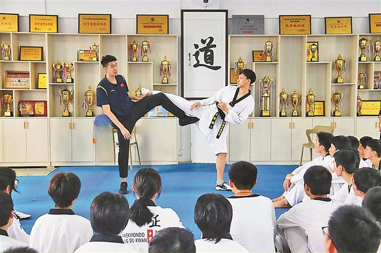 龙华新闻讯(记者 张瑜 通讯员 邹加宣 文/图)跆拳道奥运冠军赵帅现身深圳市格睿特高级中学,通过专业指导与经验分享,将奥林匹克精神传递给莘莘学子,为校园注入昂扬向上的活力。