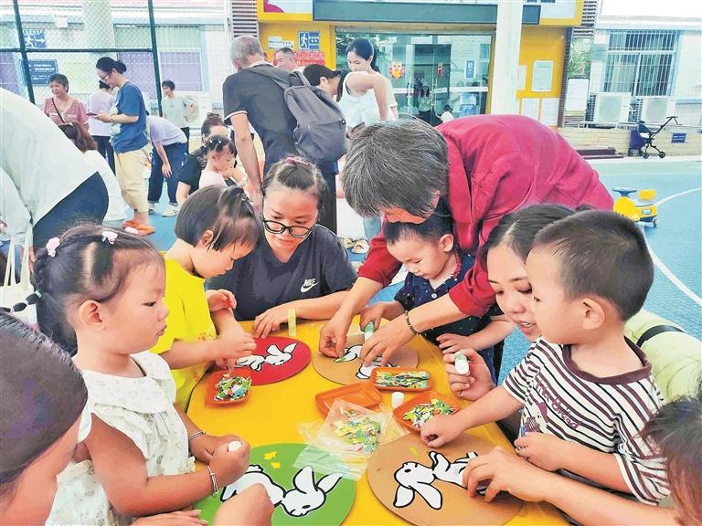 龙华新闻讯(记者 宋彪 通讯员 杨晓洁 记者 陈建华/图)5月15日上午,观湖街道樟坑径社区党群服务中心篮球场变身欢乐的童趣世界。15组2-3岁亲子家庭在党群服务中心与社区幼儿园的精心组织下,齐聚一堂,参与“科学早教进社区,亲子携手共成长”《兔子蹦蹦跳》科学育儿活动。