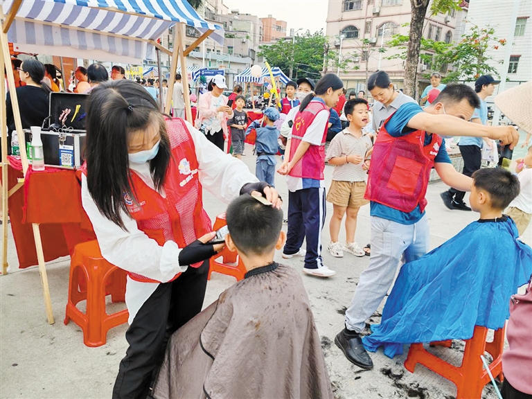 志愿者为辖区居民提供爱心义剪服务。