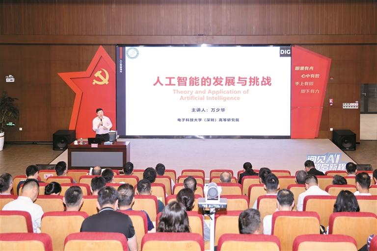 活动首先举办专题讲座,电子科技大学教授万少华围绕人工智能的发展与挑战作专题辅导,系统阐释了人工智能发展现状及未来发展趋势,并结合人工智能在工作中的实际应用,展示了相关应用场景,鼓励龙华年轻干部进一步以学促干、拥抱AI。