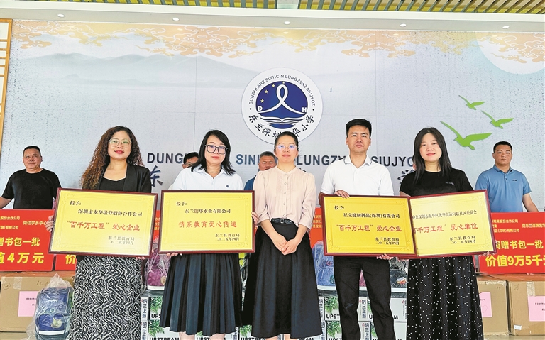 据悉,在深入推进“百千万工程”的生动实践中,龙华街道向联社区党委秉持“资源共享、治理共商、文明共创、服务共联、成果共享”的“五共”社区发展理念,与广西河池市东兰县教育局建立帮扶纽带,联合辖区墩背股份公司、星宝厂等多方力量,为东兰县8所学校送去暖心关怀。