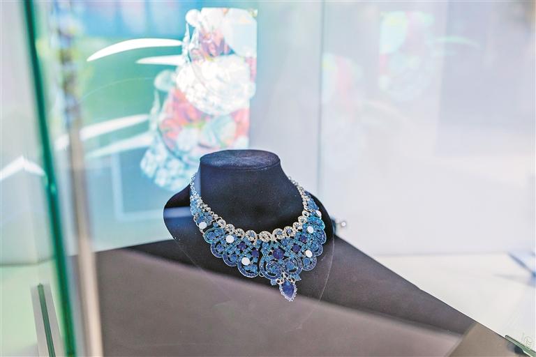 龙华新闻讯(记者 丁小梅)珠宝展柜中的紫色珠宝璀璨夺目,而它的展柜玻璃上还能显示高清亮丽的动态产品信息。这一幕就出现在文博会龙华展馆的科技企业展区中。