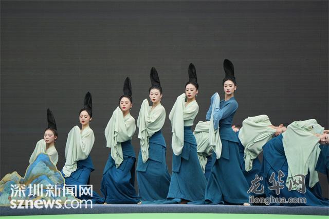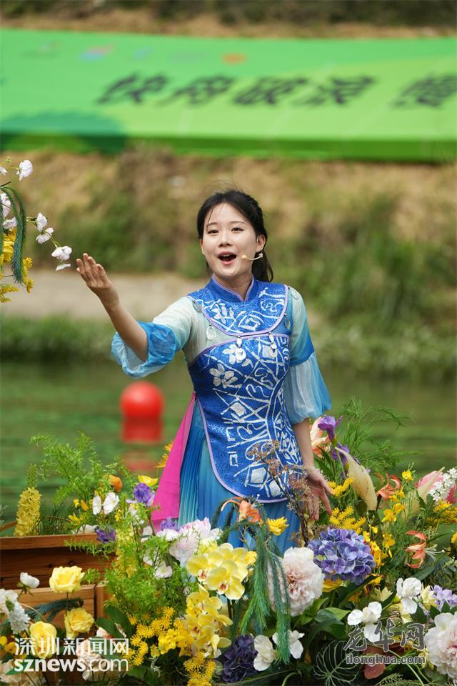 除了紧张的比赛,现场还穿插了具有传统特色的文艺演出——《鼓跃祥瑞》《只此青绿》《生态之韵》《唱响时代》等。中国东方演艺集团原班人马,带来现象级舞剧《只此青绿》节选,翩跹水袖拂过观澜河的浪涛。这艘缀满鲜华的画舫,载着两位山歌清音的使者,凌波而来,一橹摇开千层碧,两嗓唱彻万里天。