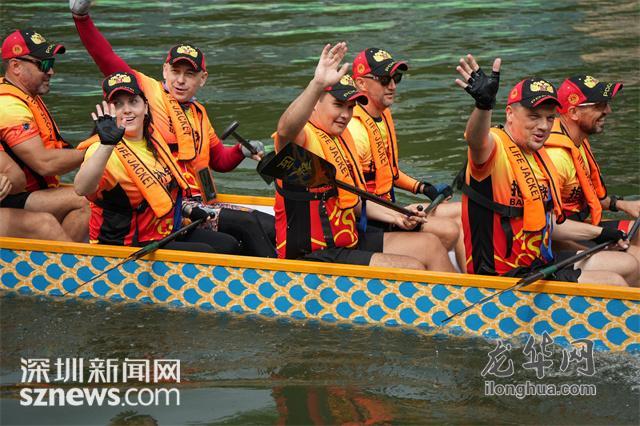 来自俄罗斯抱朴铁匠龙舟队、新加坡&马来西亚联龙舟队等国际队伍,与粤港澳大湾区龙舟豪强展开水上交锋。不同国家和地区的队伍齐聚一堂,带来了不同的文化特色和竞技风格,让这场赛事更具国际化和观赏性。观湖街道鹭湖社区女子龙舟队、润城社区花木兰队也在浪涛间写下“百舸争流不让须眉”的时代注脚。她们用速度与力量诠释着龙舟竞渡的拼搏精神,展现了团结协作的团队力量。