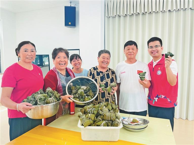 比赛结束后,四和社区党委组织党员志愿者将现场制作的粽子煮熟并分装成100份“暖心礼盒”,党委班子成员带队开展“五进”慰问行动,将活动成果即刻转化为民生关怀。为老党员送上“初心粽”,向困境家庭递出“暖心粽”,给环卫工人派发“爱心粽”,为外卖骑手准备“安心粽”,向志愿者赠送“同心粽”。90岁高龄的老党员接过粽子时,不由得感慨道:“组织送来的不仅是粽子,更是跨越时代的初心传承。”