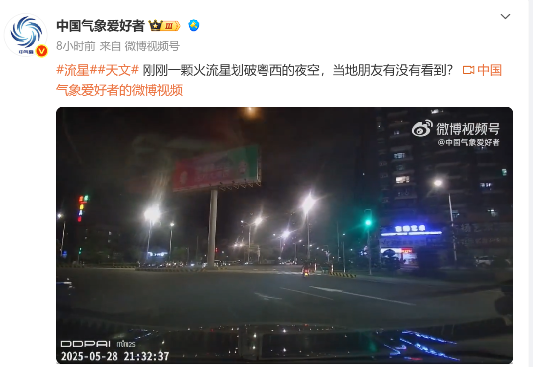 据@中国气象爱好者 :一颗火流星划破粤西的夜空,当地朋友有没有看到?