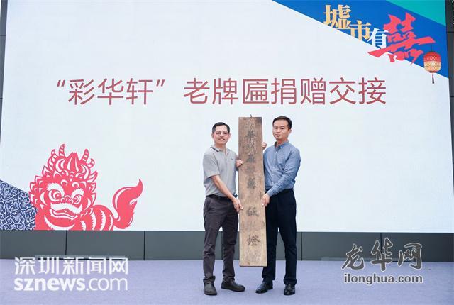 开幕式现场,四大文化项目正式启动,为古墟注入持续活力。历史空间焕新,百年碉楼变身英歌舞传习馆与麒麟文化馆,贵湖塘老围打造客家大院文旅项目,引入武侠互动轻喜剧《笑武林》等新业态,实现传统空间的功能升级。区域协作深化,龙华区与赣州安远县签约安远县数字体验馆落户古墟,VR技术全景展示赣南山水与客家风情。交通配套升级,“观澜假日直通车”正式开通,串联片区文旅资源,提供便捷游览。百年记忆传承,尹氏家族后人捐赠承载140年苏表灯笼技艺的“彩华轩”百年牌匾,延续商埠文脉。四大文化项目的启动,将唤醒市民文化记忆,使千年文脉在创新中生生不息。