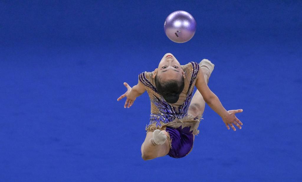 6月2日,辽宁金满星队选手谢紫萱在青年个人球操资格赛中。新华社记者 陈诚 摄