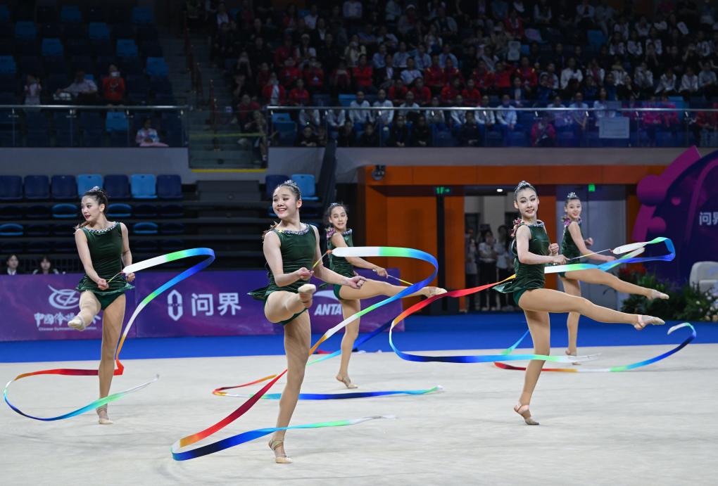 根据赛程,6月2日至4日为各项目资格赛,5日起将陆续展开各项目决赛。2日进行的少年个人资格赛中,四川队的秦菁和重庆体彩队的杨彩晴分别排在圈操、球操第一名;重庆体彩队陈芷萱和浙江体彩队孙苡桐分别获得青年个人圈操、球操资格赛第一名;陕西电子队、江苏队和贵州队分列青年集体5圈资格赛前三名;成年集体5带资格赛中,辽宁金满星队获得全场最高的23.45分,陕西电子队和四川队分别排在第二、三名,由丁欣怡、王澜静、赵婉竹、张馨艺、黄妍乔组成的北京体育大学队出现失误,获得22.05分。