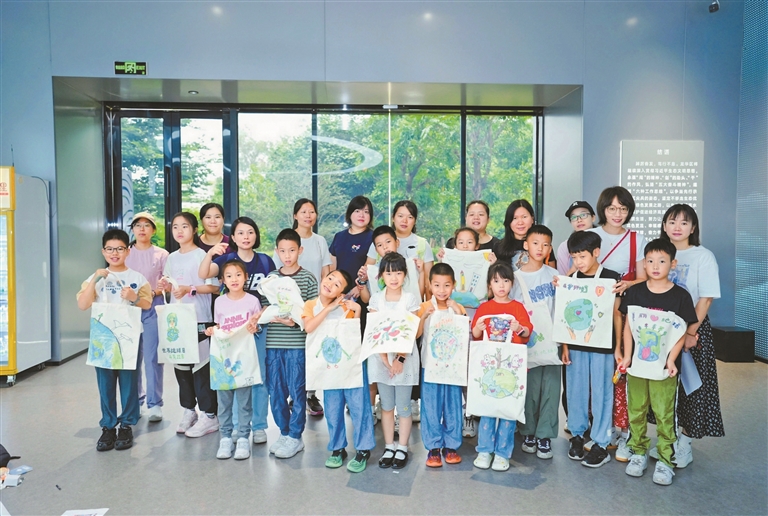 创意互动环节将活动推向高潮。孩子们踊跃分享参观心得,随后纷纷拿起画笔,在环保袋上尽情描绘心中的绿色家园图景。蓝天碧水映衬下的现代都市、智能高效的垃圾分类社区……一幅幅充满童真与想象力的画作跃然“袋”上。
