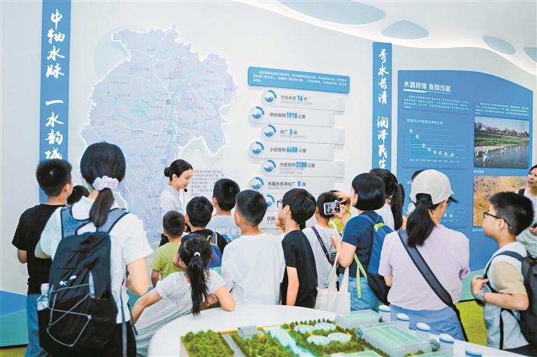当天,参加活动的孩子们走进龙华生态文明展览馆,依次探访了水环境保护、大气污染防治、土壤修复及“无废城市”建设四大主题展区。逼真的生态模型、生动的科普影像,构建起沉浸式的学习场景,让污染防治的重要性、资源循环利用的紧迫性直观呈现。一位同学在参观后深有感触:“原来我们日常产生的生活垃圾,需经过如此复杂的流程才能妥善处理。”