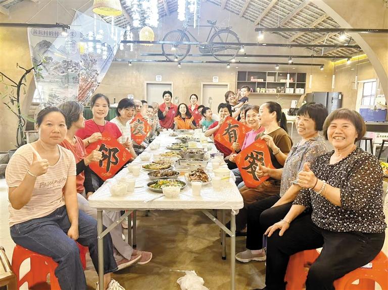 “以前总觉得邻居是住在隔壁的人,今天一起吃饭才觉得,原来邻居也可以是‘厨房搭子’。共享了这顿饭,邻居也变成了‘家人’。”茜坑老围党支部党员李彩霞笑道。