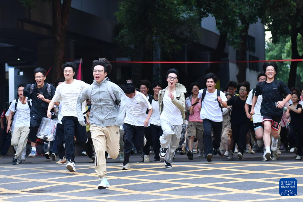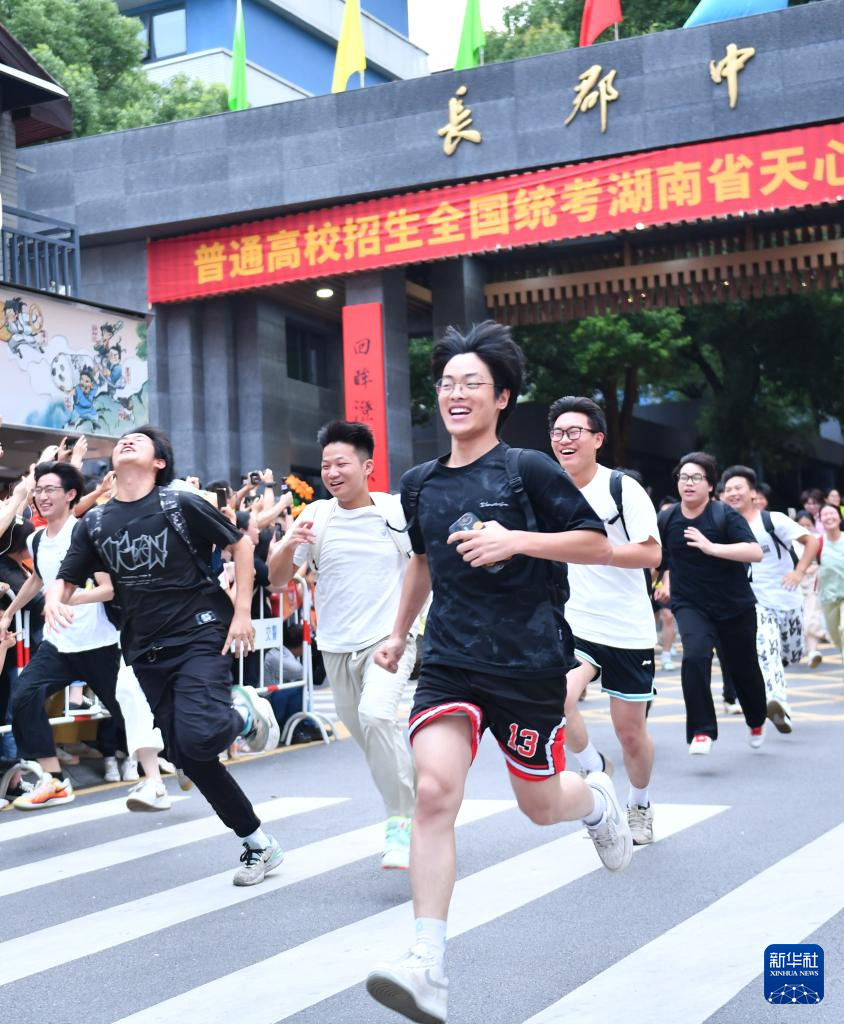 6月9日,在湖南省长沙市天心区长郡中学考点,考生考试结束后跑出考场。新华社记者 陈振海 摄