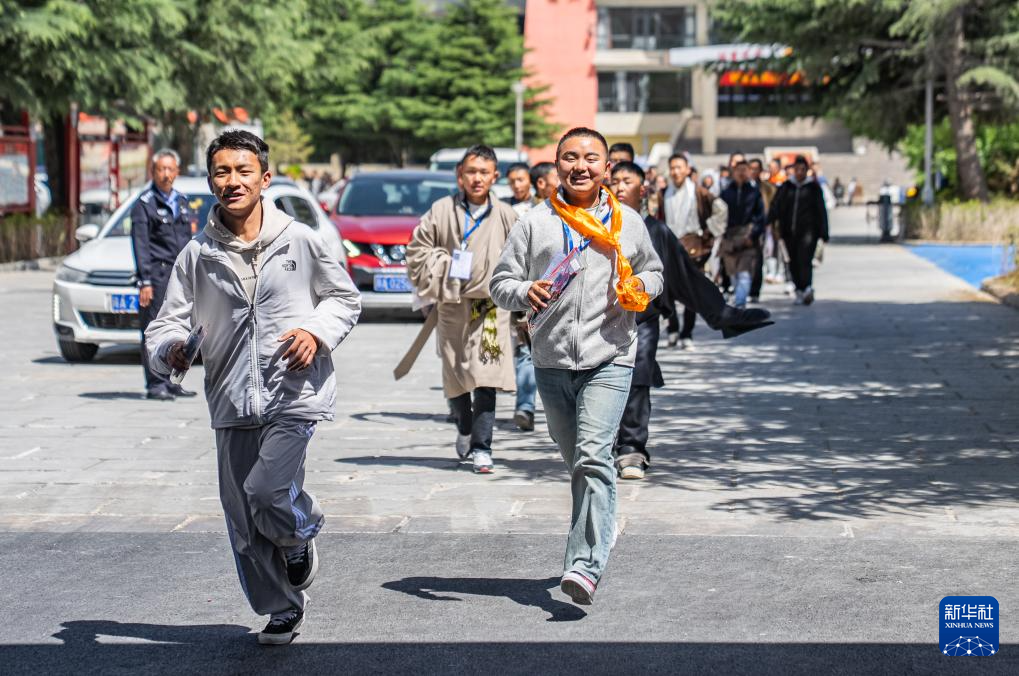 6月9日,在拉萨市拉萨中学考点,结束考试的考生跑出考场。新华社记者 丁增尼达 摄