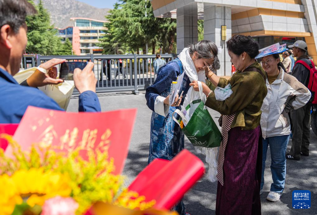 6月9日,在拉萨市拉萨中学考点门口,家长为结束考试的考生献哈达。新华社记者 丁增尼达 摄