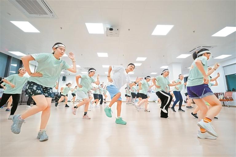 龙华新闻讯(记者 黄晓华 通讯员 梁秋婵/文 记者 陈建华/图)“来,大家跟上节奏。3、2、1,高抬腿……加油,左边再来一次!”6月6日晚,在福城街道四和社区党群服务中心活动,跟着专业教练,40多名社区居民跟着节奏高抬腿、摆臂,汗水顺着额角、脖颈滑落,打湿了运动T恤和运动发带,有人甩着头发上的汗珠,有人大口喘着气仍努力跟上节奏,健身镜里映出一片挥舞的手臂和跃动的身影。近期,在四和社区,每周五、周日晚7点半到9点,这样的暴汗热练场景准时上演,在居民群中掀起一股运动跳操的新热潮。