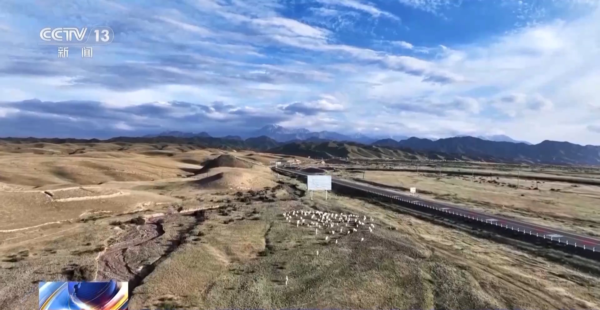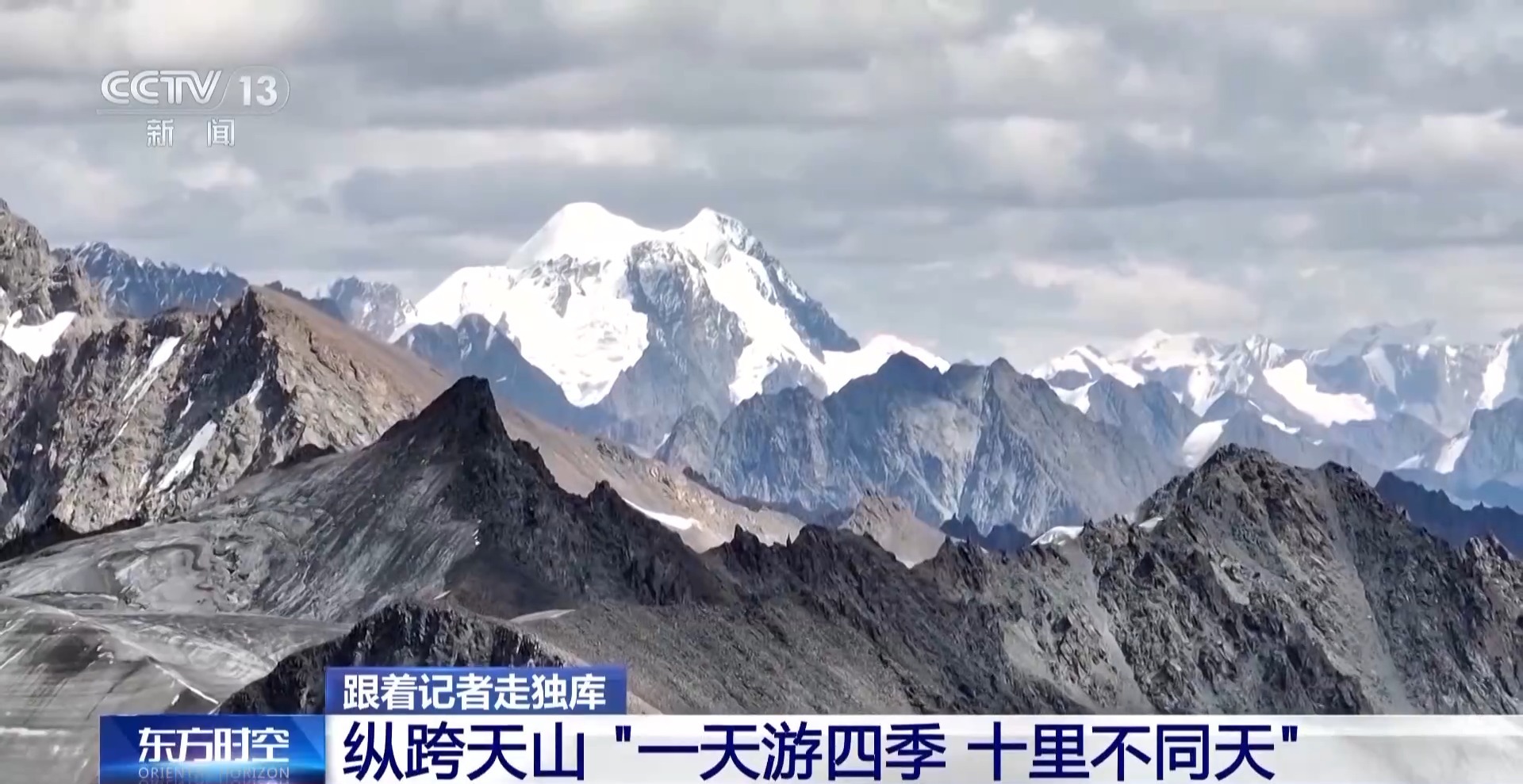 总台记者 苏蒙:我身后连绵起伏的天山山脉高耸入云,而就在山脚下,有一处深度达200米的独山子大峡谷,行走在独库公路您就可以观赏到这样高山与峡谷共处一画的壮丽景色。
