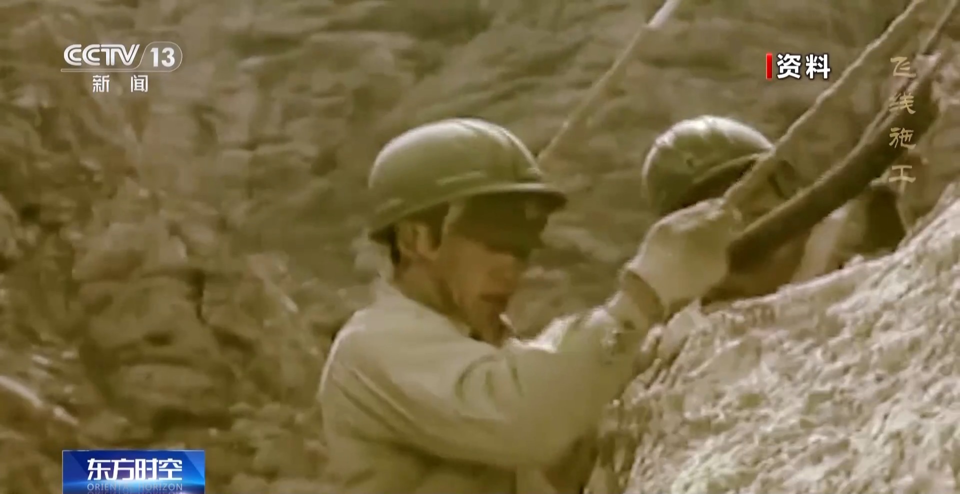 在独库公路博物馆保存的一段拍摄于20世纪70年代的影像中,部队官兵仅靠一根绳索从垂直于地面的山体降下,在坚硬的岩石上徒手开凿道路。