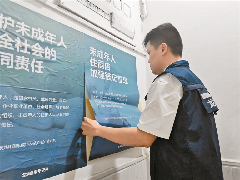 网格员张贴保护未成年人法治宣传海报。(本组图片均为资料图片)