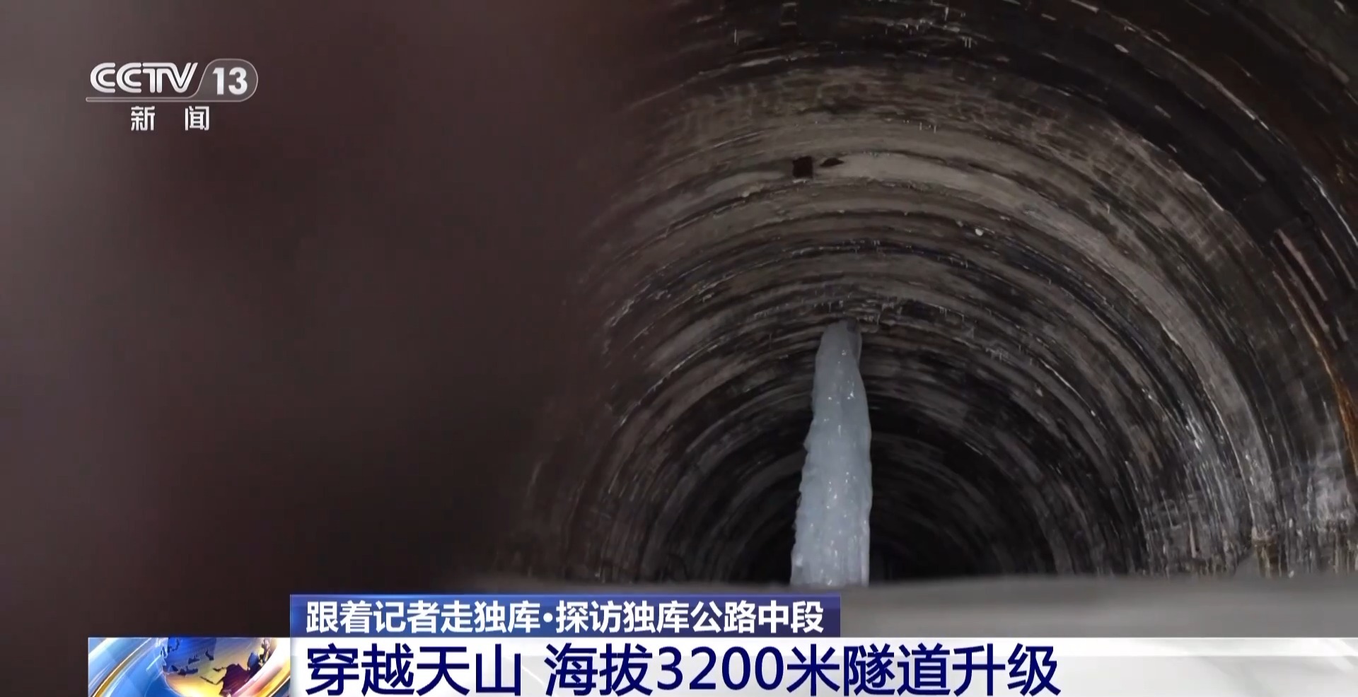 这个被厚厚的冰层所覆盖的隧道是老的玉希莫勒盖隧道,从独库公路起点行驶约160公里,就可以到这附近,海拔在3200米左右。