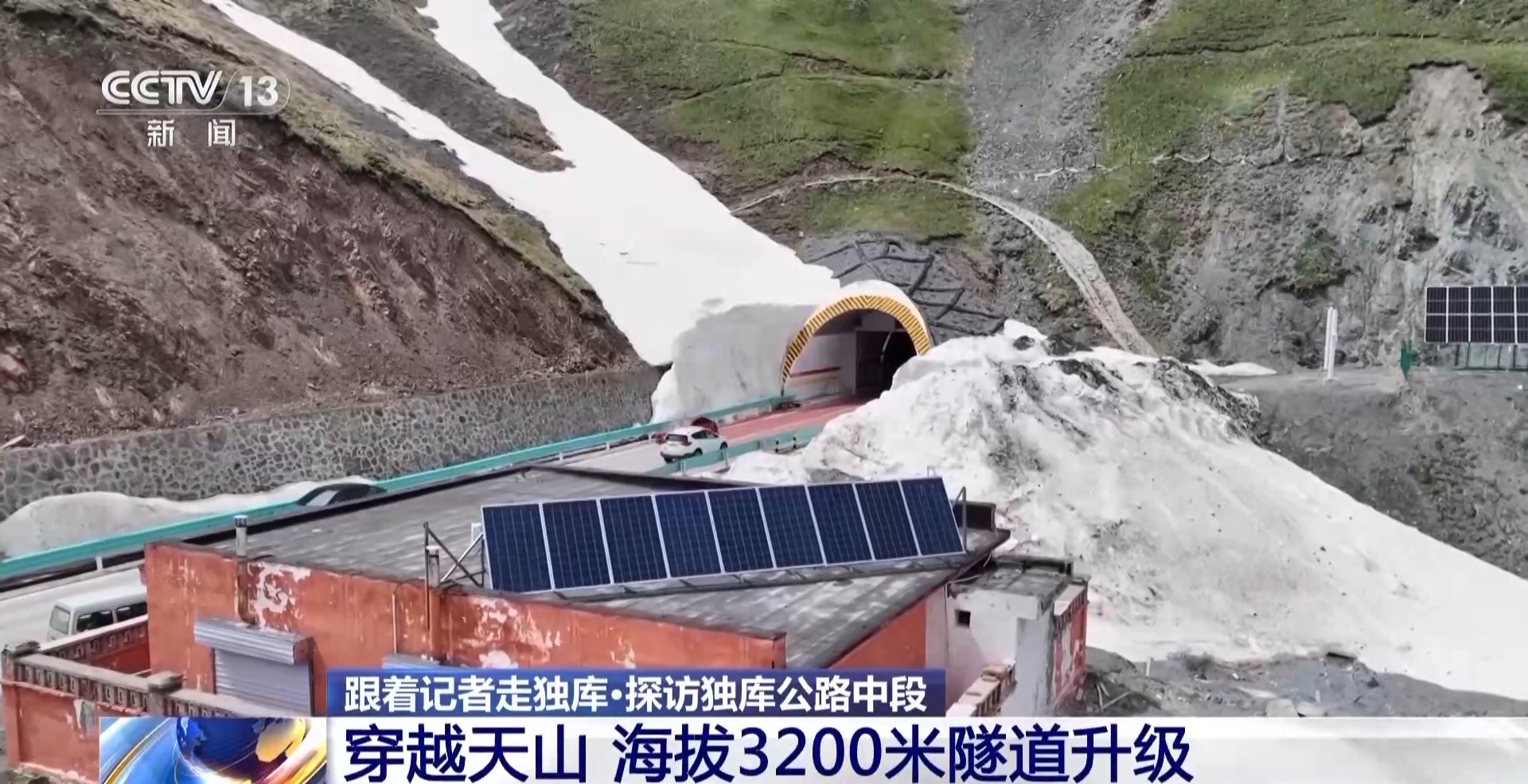 2013年,新的玉希莫勒盖隧道通车,每年延长独库公路通车时间2个月左右。去年起,新隧道的光伏供电系统投运,为照明、监控、消防等提供绿色电力。