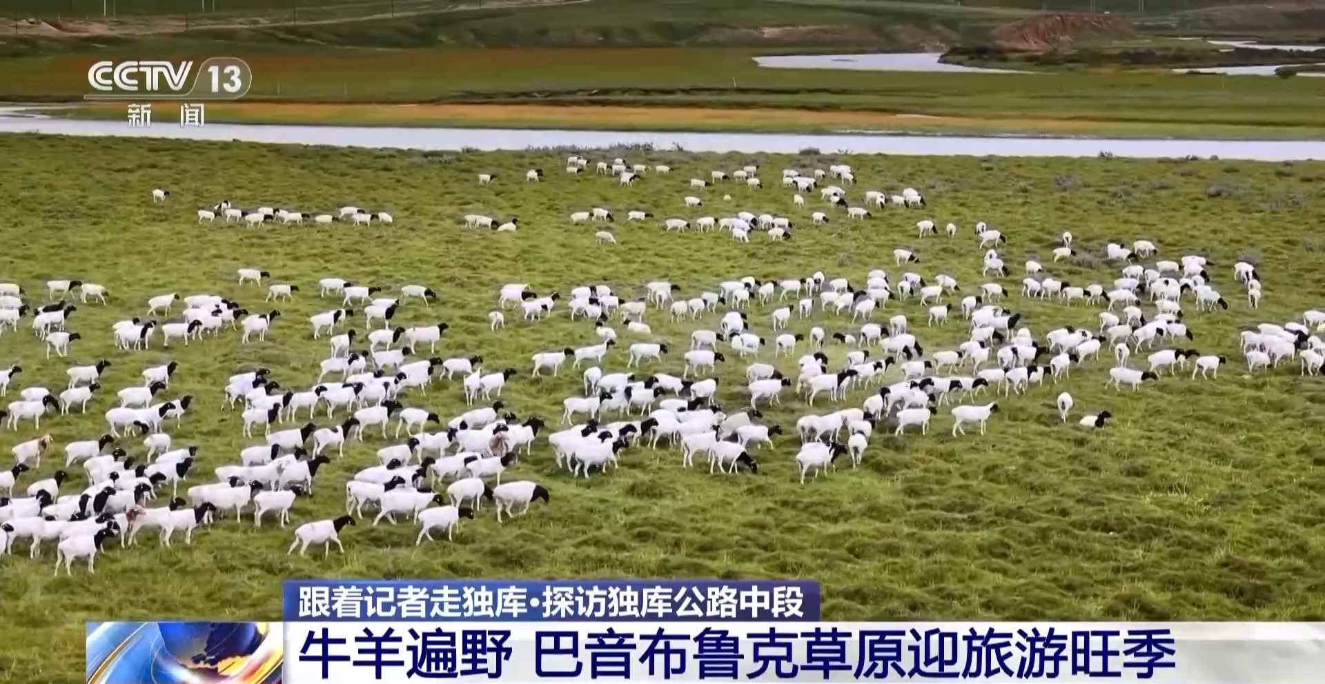 来到巴音布鲁克草原,可以看到草原上有许多黑头羊。