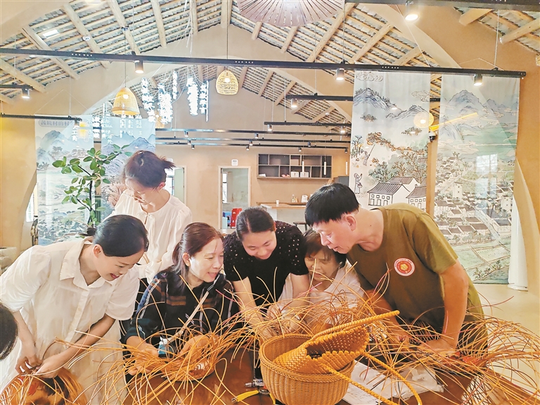 辖区居民在茜坑体验竹篮编织。