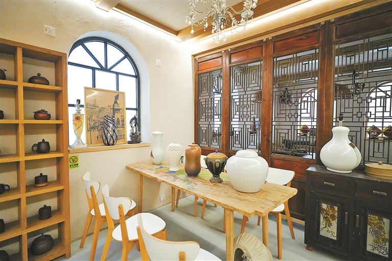 最初,他所改造的区域是位于红楼旁边的万安堂古民居。要“以旧变新”,比新盖一座楼房更费脑筋,但张治屏做到了。房屋狭窄,那就设法打通;光线不够,则拓宽公共区域,利用天井引光。在他的计划中,侘极居以民宿为主,却不限于民宿。更多是以民宿为核心,聚焦生活场景营造,并通过多业态并存的形式,打造出适合年轻群体社交、生活的圈层。张治屏将这样的圈层文化形容为生活广场,“文创是在生活中产生的,因此需要不停地给项目增添新的东西。”