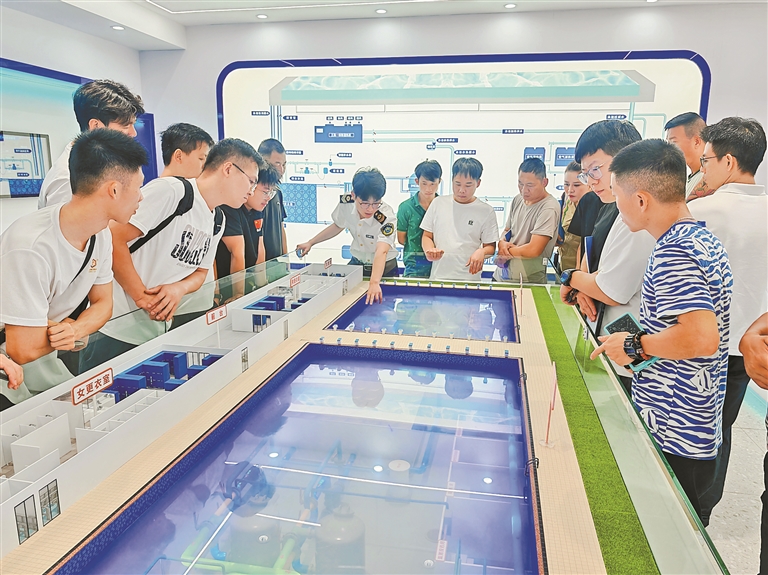 区疾病预防控制中心卫生监督员借助教学模型沙盘、实物展示台等多种直观形式,详细讲解游泳池水质卫生标准和有关国家标准。