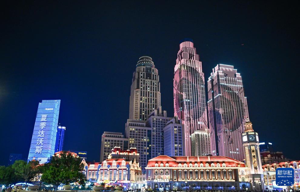 世界经济论坛第十六届新领军者年会(又称“夏季达沃斯论坛”)即将在天津开幕。夜色下的天津灯光璀璨,多座地标性建筑点亮楼体灯光,流光溢彩迎接中外宾朋。