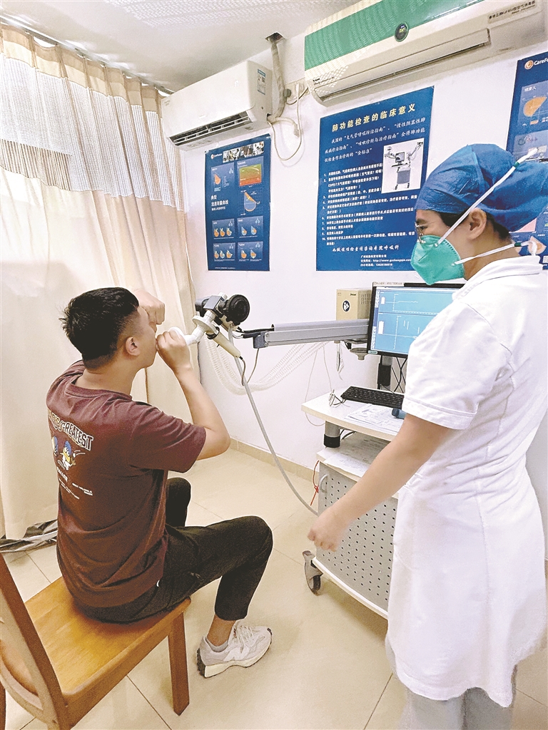 龙华新闻讯(记者 黄晓华 通讯员 袁贵丽/文 记者 陈建华/图)“多亏社康医生的及时转诊,我才知道多年的咳嗽不是简单的‘老慢支’。”近日,家住民治街道的张大哥因呼吸困难加重、咳嗽也越来越严重前往社康就诊。这位有20多年烟龄的老烟民起初以为是“老慢支”(慢性支气管炎)的毛病又犯了,经转诊至龙华区慢性病防治中心肺科门诊后,最终被确诊为慢阻肺病。经过系统治疗,他的呼吸困难和咳嗽症状己显著改善。
