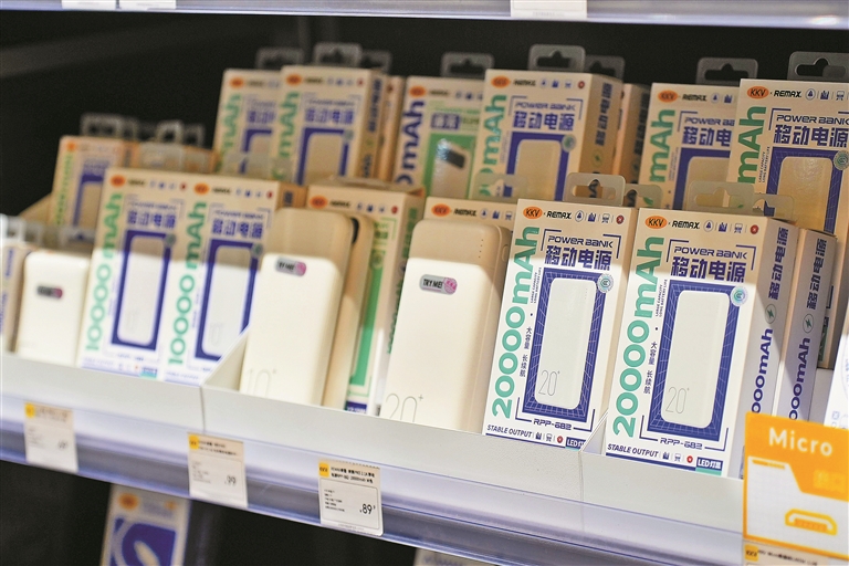 在福田区卓悦中心某商铺,移动充电宝摆满展柜。深圳晚报记者 严文婷 摄
