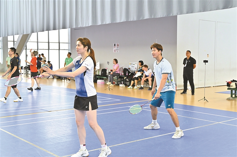 赛场上,选手们挥洒汗水、切磋球技,展现出顽强拼搏的体育精神,场边观众的热情加油声此起彼伏,整个赛场洋溢着欢乐友好的氛围。