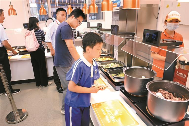 很多人误以为社区食堂是“老年人专属”,其实包括中小学生在内的市民也会选择到社区食堂用餐。深圳优食管家运营主管熊德兵告诉记者,食堂的小程序后台可添加家人信息,成功后可以共享账户,孩子没有现金、手机等电子产品,都可以来食堂“刷脸吃饭”。