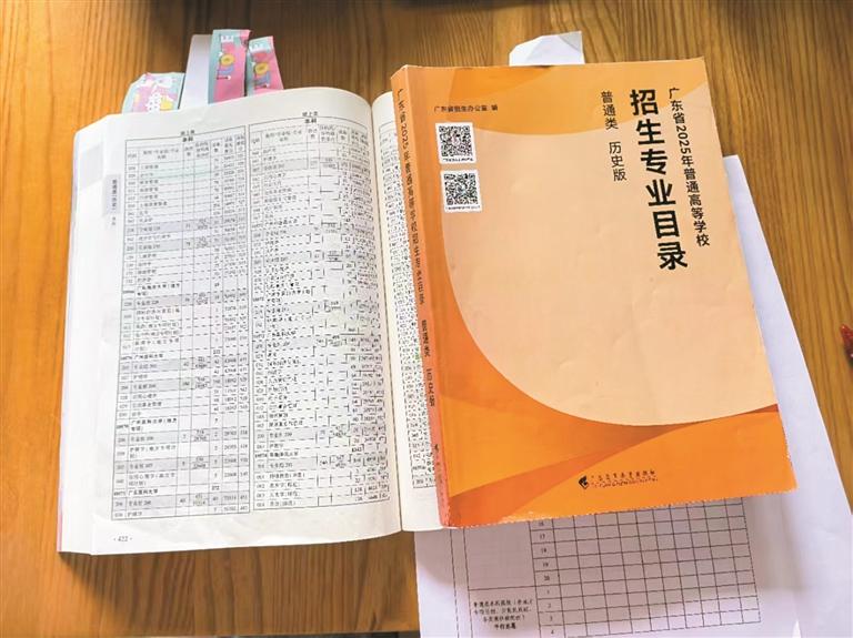 家长翻看广东省2025年普通高等学校招生专业目录。 受访者供图