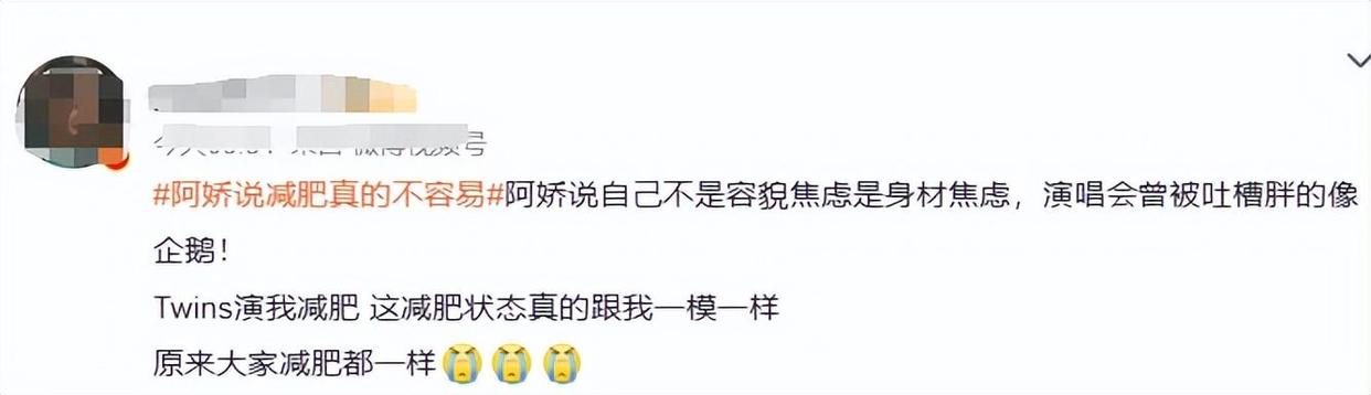 许多网友表示与阿娇有相似困境:“阿娇演我减肥”。