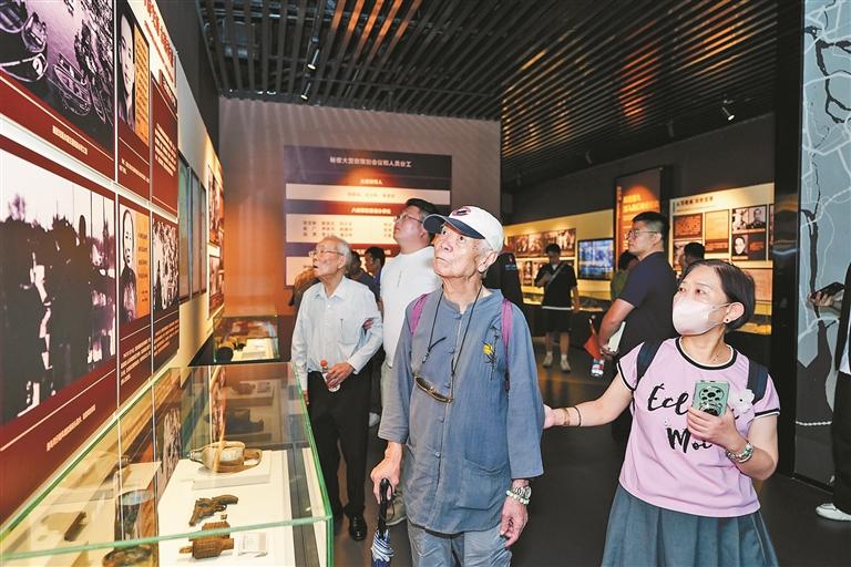 香港东江纵队老战士及家属参观中国文化名人大营救纪念馆。