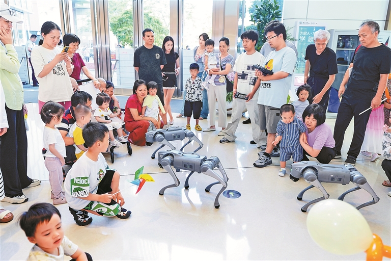 现场的数字消费市集上,来自启迪数字科技的机器狗吸引大批小孩互动和消费者驻足。市集汇聚了龙华区内30家商户,主要分为折扣区、体验区、满减区、秒杀区四个区域,每个区域都有商家的专属折扣及优惠,种类涵盖零售、娱乐、生活服务等多个领域,通过线上消费模式,为消费者提供多重优惠福利,致力于带来更便捷、更智能的消费新体验,助力打造更加优质的数字消费场景,激发消费潜能。其中,市集内还专设了“代表委员在倾听,群众意愿来收集”接访摊位,群众畅所欲言,向代表委员反馈日常发现的民生问题,提出自己的意见建议。代表委员们也现场解答记录,积极解决居民关心的急难愁盼问题。