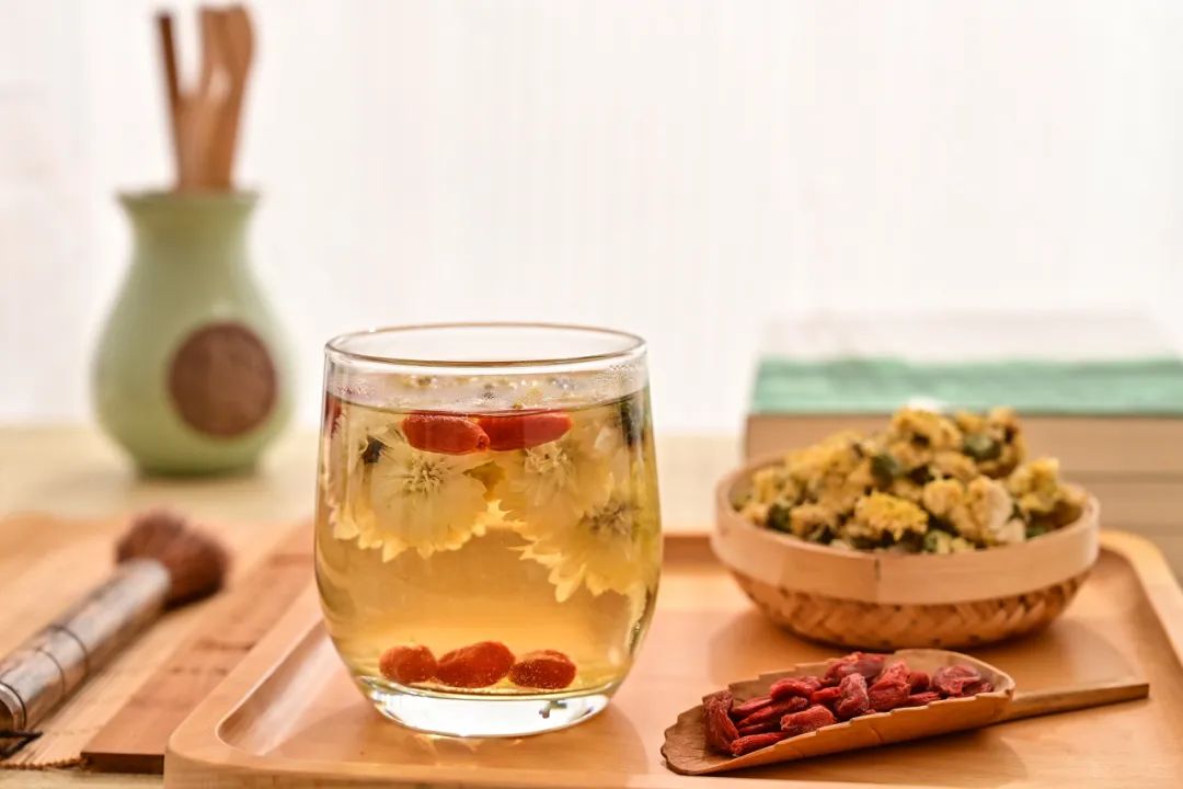 取10克枸杞、3克菊花放入杯中,用热水冲泡,常温放置温度适中后即可饮用。