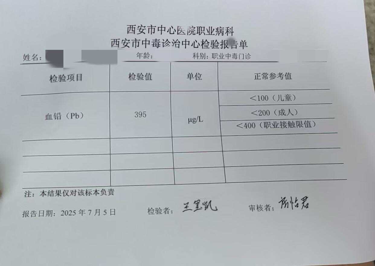 一位在西安市中心医院的幼儿家长随后也证实了这一消息,称下午多名老师在该院拿到血铅超标的检测结果,均显示超标。