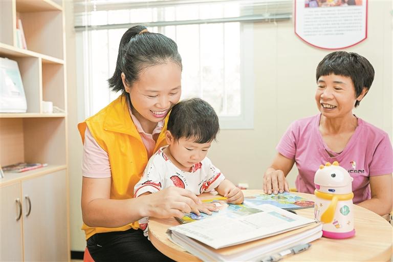 杜丕瑜在社区亲邻之家带着小朋友读绘本。