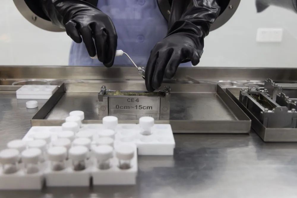 2024年9月24日,科研人员在月球样品实验室的解封操作台上处理嫦娥六号月球样品。 新华社记者 金立旺 摄