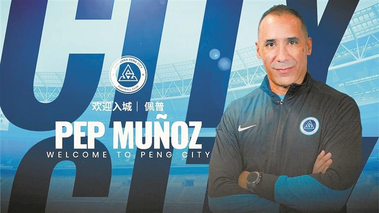 深圳新闻网2025年7月11日讯(深圳特区报记者 吴孟菲)7月10日,深圳新鹏城足球俱乐部正式对外宣布,任命西班牙籍教头佩普·穆尼奥斯担任一线队主教练。这位拥有欧足联Pro级教练执照、兼具巴萨青训体系积淀与中国足球执教经验的45岁少帅,将开启其在中超联赛的全新征程。