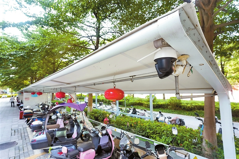 ④“AI慧眼”监视镜头24小时监控电瓶车棚。 深圳晚报记者 严文婷 摄