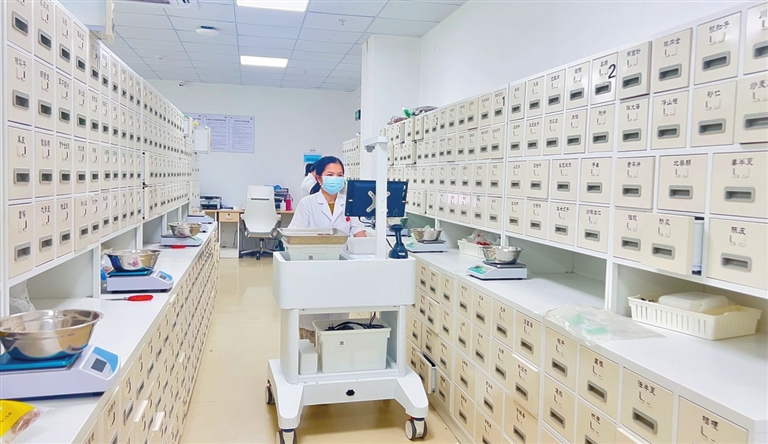 ②医师借助智能调剂推车精准拣配。 深圳晚报记者 黄馨莹 摄