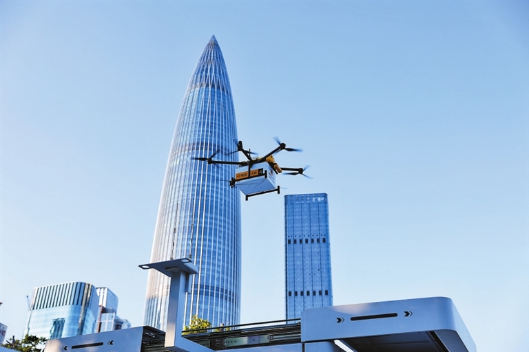 7月8日下午,宝安后亭社区居民张先生的手机响了,提醒他无人机即将抵达。张先生下楼走两步,就是社区停机坪。他向记者展示无人机刚送到的中药:“热乎乎的!”无人机从6公里外的东塘社区健康服务中心起飞,从处方审核,到配药、发药,再到浸泡、煎煮、包装,最后无人机配送,人工智能系统全程在云端指挥。