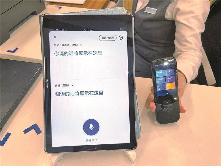 今年4月份以来,为进一步提升政务服务质量,提升外籍人士办事体验,南山区沙河街道便民服务中心陆续配备了SOON AI智能名片、讯飞翻译机等人工智能服务工具。据了解,SOON AI智能名片搭载“SOON”App实时翻译功能,支持中、英、日、韩、俄等130余种语言的即时互译。窗口工作人员、外籍人士通过平板设备中的“SOON”App可实现多语言对话交流。
