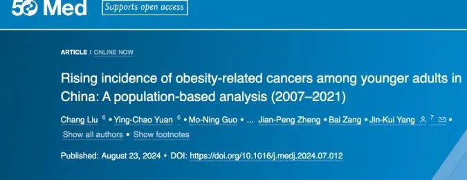 2024年,北京同仁医院杨金奎等发布的研究表明,国人患与肥胖有关的癌症发病率增长迅猛,而且主要在50岁以下的人群。