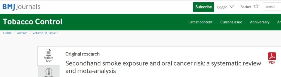 2021年,BMJ旗下子刊Tobacco Control发表的研究指出,与未接触二手烟的人相比,那些接触二手烟的人,患口腔癌的风险可能会高出51%,而如果接触二手烟的时间超过10年或15年,风险将增加一倍。