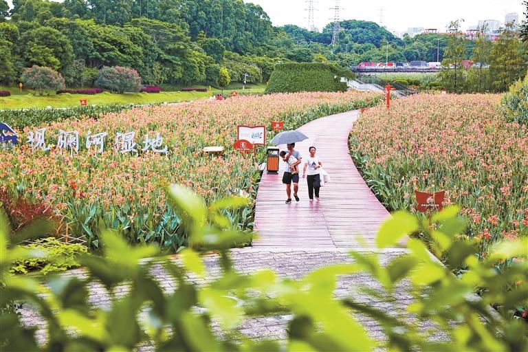 走进观澜河湿地公园,满目的绿意让人挪不开眼,公园里种植了美人蕉、花叶芦荻、风车草等绿植,品种繁多,可以近距离探寻和观赏植物之美。公园对岸,可以携三五好友露营,打牌、畅谈、野餐,饱览着河道风光,享受大自然的安谧。还可以看到嬉戏的白色精灵们,湖面上三五成群的绿头鸭,增添了游玩的趣味。
